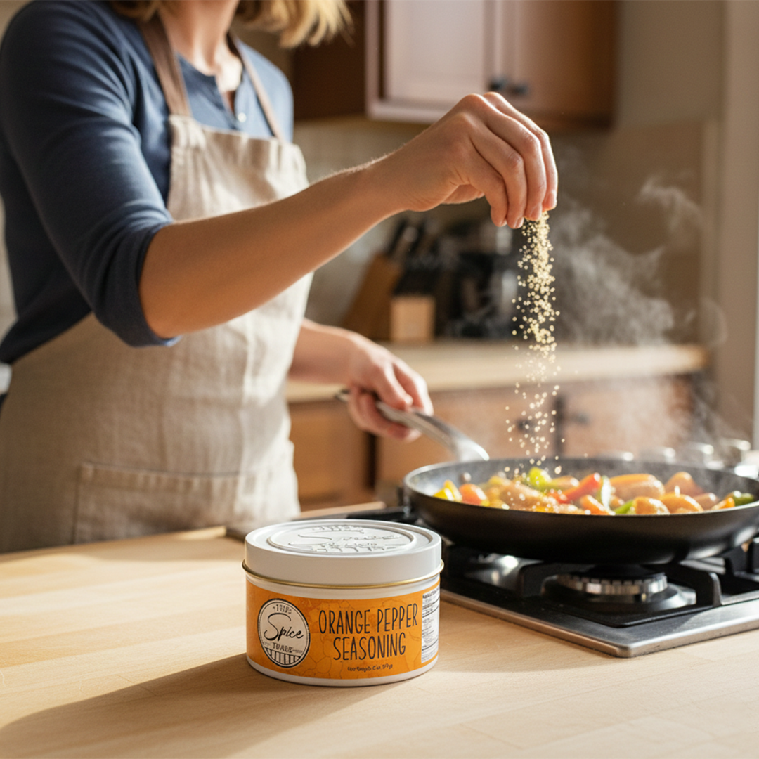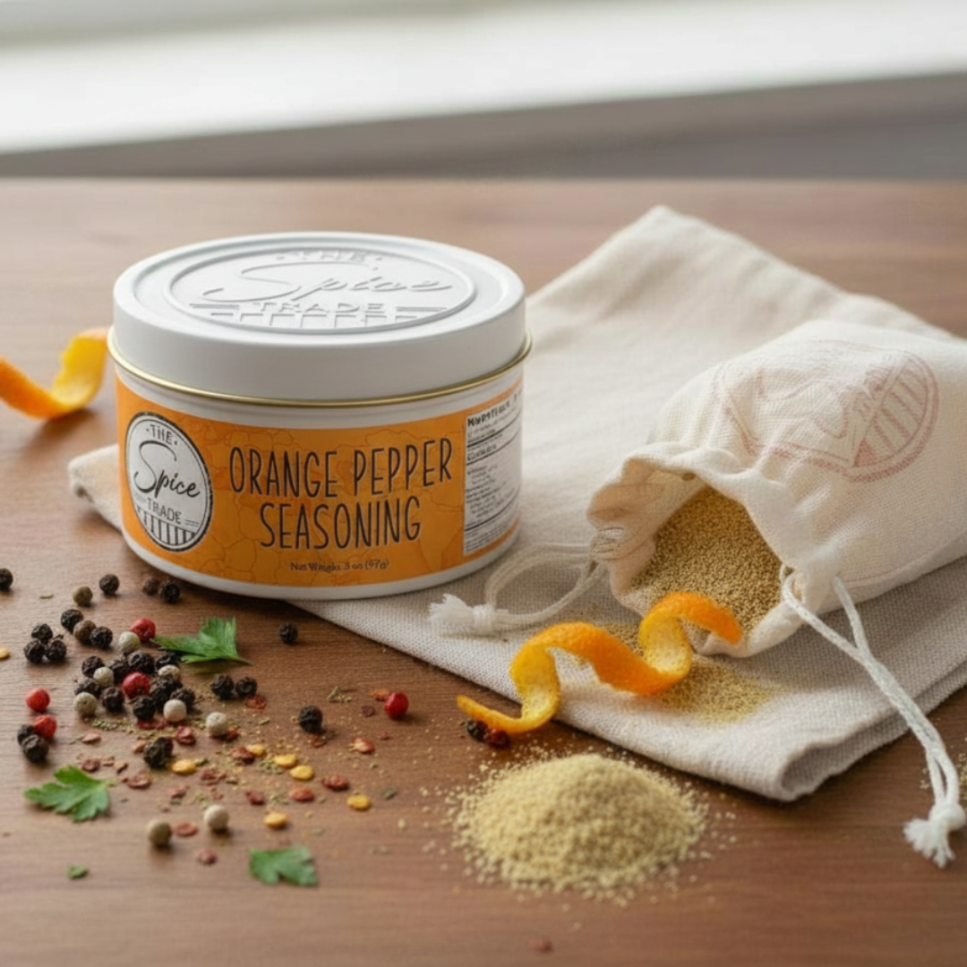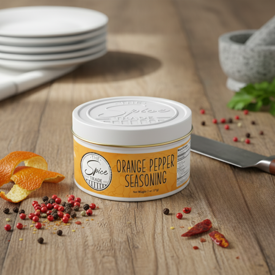 The Spice Trade Orange Pepper Seasoning brings a burst of sunshine to your kitchen. This unique blend combines the lively zest of orange peel with the bold heat of black pepper, creating a perfect balance of bright citrus and warm spice. It’s an easy way to elevate everyday dishes—sprinkle it on chicken, seafood, roasted vegetables, or even popcorn for a refreshing twist. Whether you’re cooking a weeknight dinner or hosting friends, The Spice Trade Orange Pepper Seasoning adds a gourmet touch that makes every meal taste fresh, flavorful, and full of life.